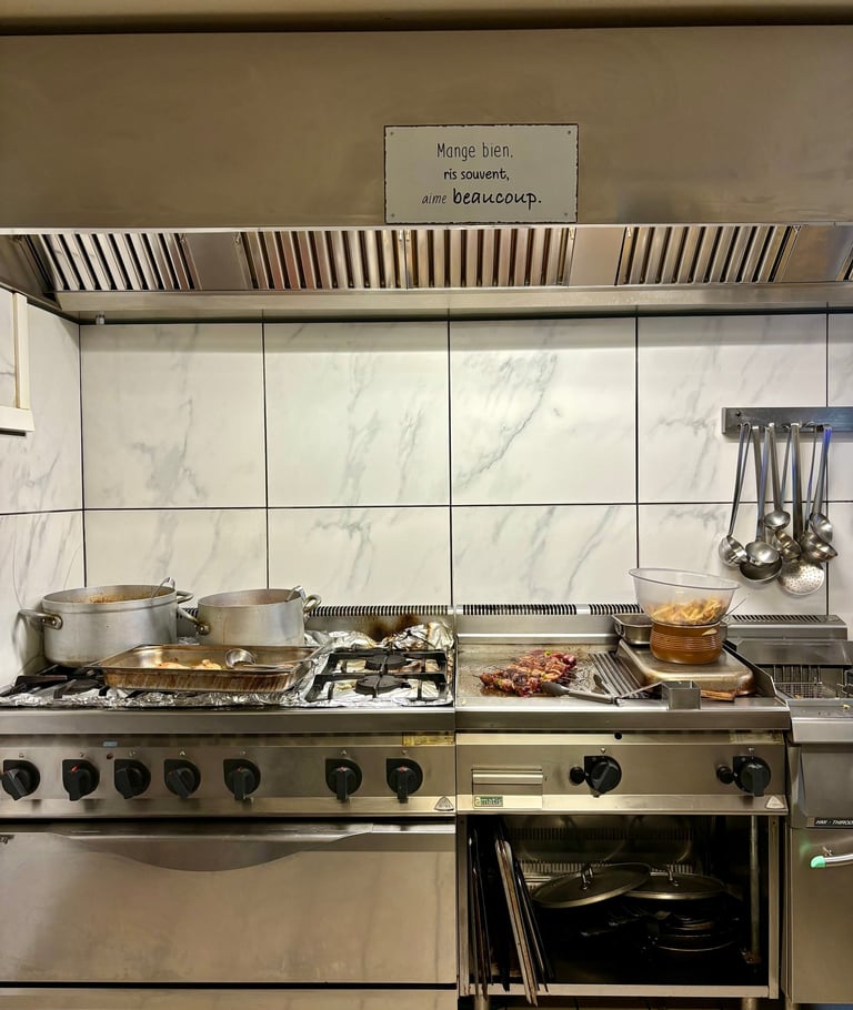 En effet, chez nous, le menu est unique et change tous les jours en fonction des produits de saison et des arrivages de nos producteurs. Nous avons à cœur de mettre en avant la cuisine traditionnelle. Par exemple, nous proposons des plats typiques tels que la tête de veau, des rognons et de la langue de veau, mais aussi des spécialités réunionnaises. En cuisine, nous avons la chance de compter parmi notre équipe une personne experte en cuisine réunionnaise, ce qui apporte une touche unique à notre menu.